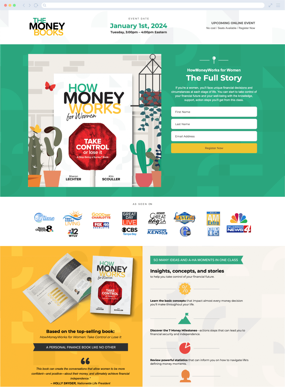 我们的书籍和教育工具为您提供了以金融教育为核心的全面营销系统的可信度。